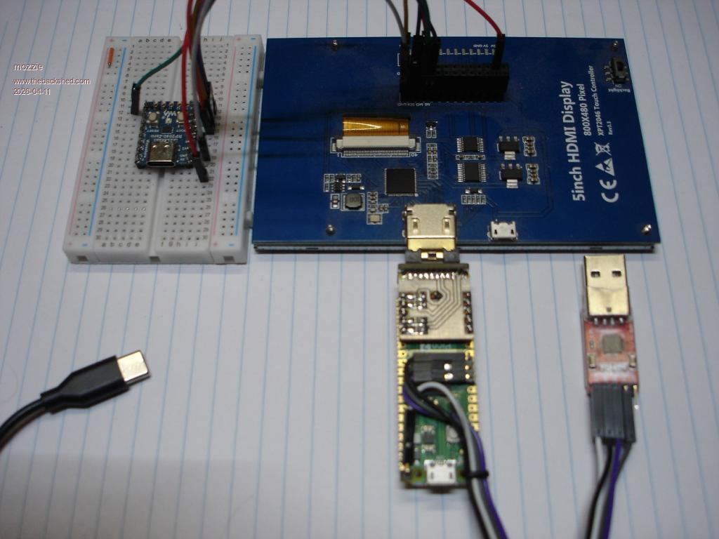 The idea is to have a 10" resistive touch monitor (5" version pictured) that can be plugged into a PicoMite-HDMI-USB with only a HDMI and USB lead connecting them, much like a normal monitor. These are available from Waveshare and others in various sizes and with the XPT2046 touch controller for use with a Raspberri-Pi.