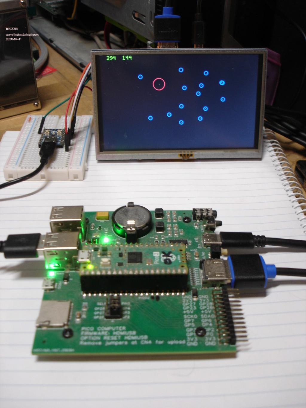 The RP2040-Zero is plugged into the USB-HUB on the PicoMite-HDMI-USB and uses the USB-CDC to send the touch coordinates etc