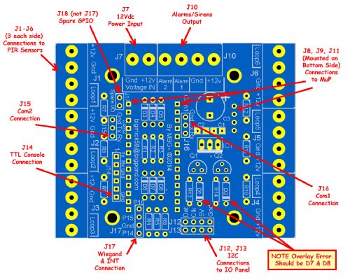 MuP-Security is an alarm module that plugs into MuP and provides the basis for a home/shop/Van security system. I have attempted to provide as many features as I can in a relatively small 76mm x 61mm PCB.