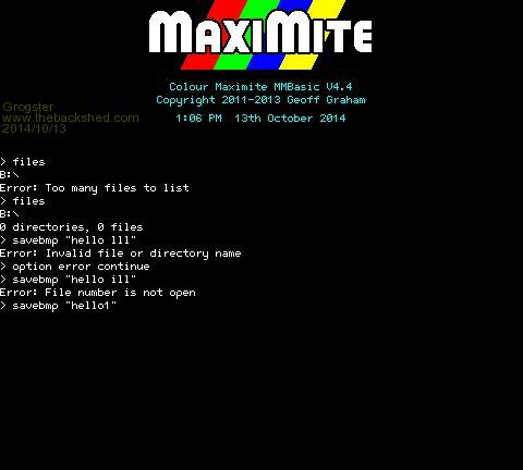 Forum Index : Microcontroller and PC projects : MAXIMITE:File error handling doesn’t work