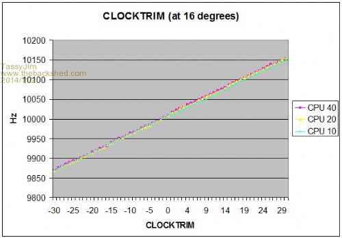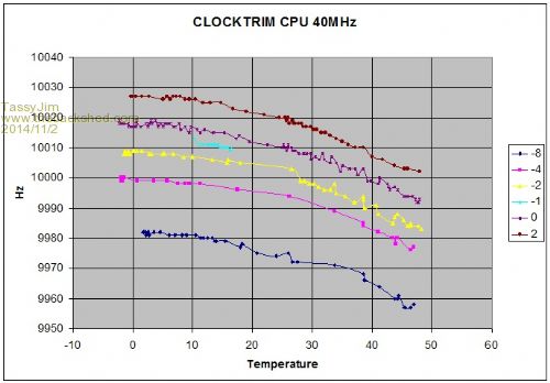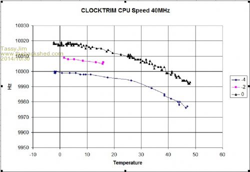 I was going to try to do some tests at a greater range of temperatures but the BOSS wouldn't let me take over the kitchen. If the CLOCKTRIM was easily adjusted without the worry of flash failure, I could sneak into the kitchen and do some quick tests.