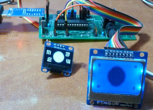 I've completed a fully working version of the graphics library including drivers supporting both the SSSD1306 OLED and the Nokia 5110 displays. I'm using cFunctions to optimise some of the critical code areas and I think the speed achieved now is fully usable for most applications. Obviously more of the basic could be converted into cFunctions to speed it up further and I haven't yet tackled accessing the PIC device registers from C. The downside of cFunctions is that errors typically result in a processor reset making debugging much harder than in basic alone. I'll attach the code and Cfunction source below but first I wanted to thank Geoff (what you have achieved is extraordinary!),Jim Hiley (mm-edit) and Peter Carnegie (cFuncgen and the tutorial) for creating a great development environment for embedded computing. I've used a fair range of the options out there, picaxe, arduino, Texas Instruments Tiva, etc. but the micromite mk2 together with the cfunction capability is just superb. The development process I've used for the code is to have mm-edit, notepad++, mplabx, and cFuncgen all open on the computer. The basic code development is done in mm-edit, cfunctions are developed in mplabx, once compiled press the refresh button on cfuncgen and it reads in the new elf file and then press the make cfunction button. Notepad++ immediately recognises that the cfunction basic file has changed and reloads it, then it can be copied and pasted into mm-edit. Using this process a change to a cfunction and retest on the micromite can be done in less than a minute. If cFuncgen doesn't work for you, re-install XC32 and make sure you tick the "add-to-path" box. There is one common issue with the SSD1306 OLED boards. Many of the cheap boards (even the 4 pin ones) say they are i2c but don't work properly. They do not send the required "ACK" when receiving data. The Arduino community have solved this by producing an i2c library that works without the "ACK" but this is a poor solution. There is however an easy hardware fix. A blob of solder between pins 19 and 20 on the cable from the display where is connects to its PCB connects DIN and DOUT which is one of the requirements for the SSD1306 controller to work properly in i2c mode - check your display and mod if required!!! My code is a port from the Adafruit graphics library - thanks to them for making their code available. It uses two 128 element 64-bit integer arrays "screen" and "displayed" to map the actual display. The graphics routines modify the "screen" array in the micromite memory and then the "refresh" command writes to the actual display and updates the "displayed" array. In this way the "refresh" command can compare the arrays and optimise what it need to write. I'm using a cFunction to do this compare and this function not only returns the x,y coordinates of the screen element to be updated but also whether a cursor positioning instruction is needed (quite pleased with this )