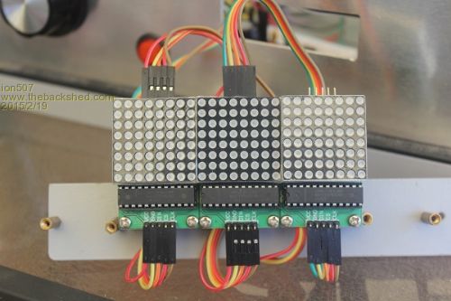 G'day All, I've been playing around with 3 of these 8x8 LED displays with MAX7219 drivers for the last few weeks as a larger display for my timer project that can be read across the room. I started off with the demo that ViscomJim put on the forum. Since then I have a program that works to display some graphics or a counter but I want to make sure I have the orientation of the displays correct before it is all mounted in a a case as I saw a few people saying that their displays came up sideways or mirrored with some other demo programs. This is how I have mounted mine: