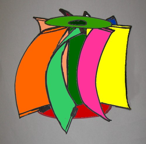 Here's the design I was thinking of. Well, not really as exotic as I was thinking but I have tried to target strength and torque. I have built a few little wind generators and I've found the biggest problem is to get them started. This is nothing fancy in wind generator design, in fact it is rather crude being just a drag machine. Still, put it up against any others and see what performs better then enter with that one.