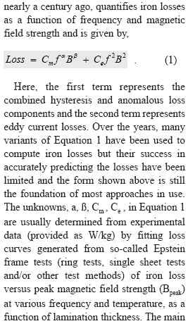 Source: http://www.magneticsmagazine.com/images/Archived%20Articles/ JJ08_Infolytica.pdf They also mention 'Epstein' tests and ringtests. I'm slightly familiar with ringtesting; in the near future I'll try to study up a bit more on those Epstein tests. I know the local motor rewinding company has equipment to determine whether the stator losses are still within specifications. If the losses fall outside specs they apparently don't even bother to rewind. I'm curious how they actually measure this. [quote=Steven][...]gets me chewing up my keyboard. [/quote] Patience is a virtue. In the mean time: Bon appétit