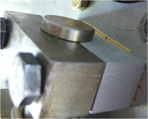 Shows shim under inner mount to set tip runout , .25mm gave approx 5mm at tip