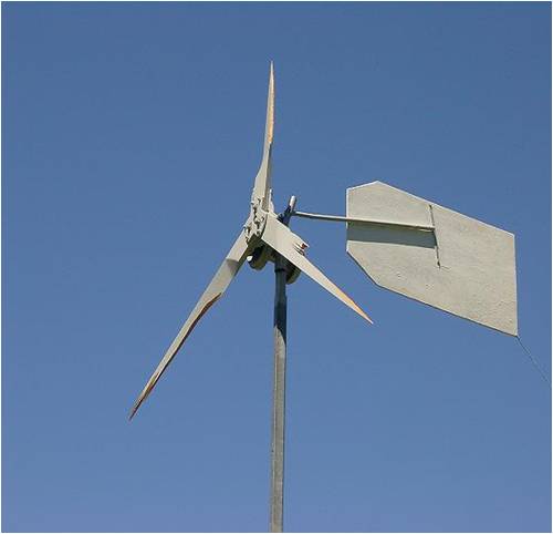 I just thought I'd throw this everyone's way. I'm working on a true ax-fx windmill, but I'm going to throw in a little twist. I'm going to make it a "down-wind" machine and place a dorsal fin atop the housing. A fin will also discourage "precession" caused by the angular momentum of the whirring blades acting against the tower-mount bearing.