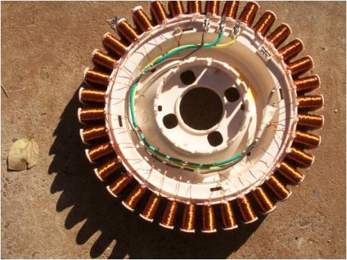 kiwijohn here is a picture of my stator wired to a 2 poles in series.I have also upload a picture of the turbine.I am not sure which way to wire this stator.Any help would be great