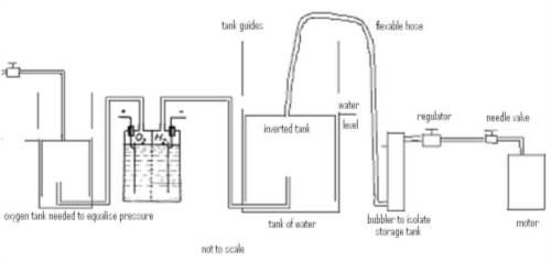 The picture below is a basic plan of the lay out. As the gas builds up in the tank it causes the top tank to lift. This idea has been used on natural gas as storage for a town also to store the gas off septic tanks and serves as a pressure relief valve . This makes it very safe as you must add oxygen and an ignition sources for hydrogen to burn. The bubbler is a small sealed container full of water. If the gas starts to burn back up the pipe from the motor this prevents the flame reaching the storage tank as the flame can not pass through the water. The pressure in the tank depends on the weight of the inverted tank.