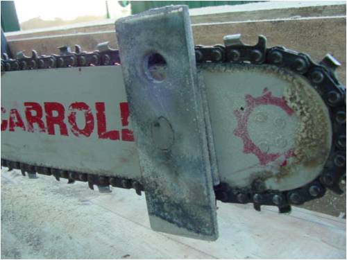 2. Do tighten the chain more than is usual, we don't want too much slop, else you will have to leave more error wood to compensate.