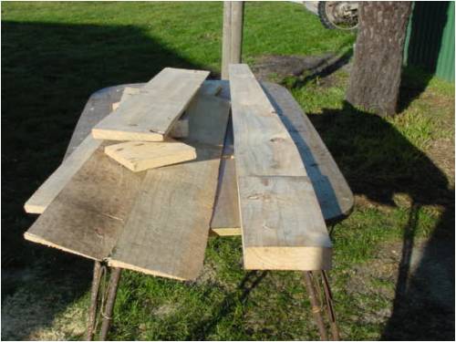 It has been about 9 months since we cut up a pine tree from the other side of the Island. Out of this I got some 8"x2" planks cut up by the bloke with the portable saw mill.