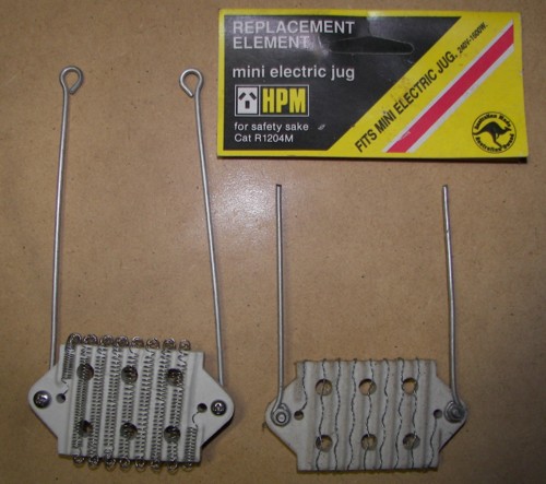 Yes, you could put jug elements in parallel, in the case 12 of them! Now, this article from Oatley about using the wire from jug elements. Are they suggesting putting the bare element straight into water? I asked this question on the 31stMar, and didn't get an answer . . . wouldn't there be a problem with hydrolysis by having the element exposed to the water? Anyone tried it? |