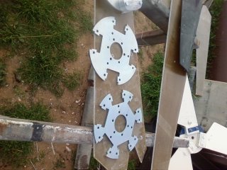 yesterday we had gale force winds, just what i needed for the first test, the unit put out 39 amps average 24vdc using twin 7 pole 80 series star stators. Ill take a photo of the blades and give you the dimensions of the 3 blade setup tonight ( im at work at the moment )The blade centre seems to be a little bit under strength so i will add another disc ( you bolt in as many as you want to get the desired result ) Also the angle of attack needs to be increased as the unit took too long to kick in, these blade blanks that i set the alloy blades on have a complete set of degree settings moulded in at 12 degree intervals so we can record our angles settings. Till tonight