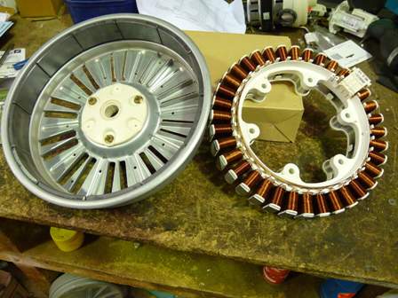 LG Front loader has a similar setup to the F&P and I thought it might be useful for wind power. I have not gone into the details yet as they are hard to find. What I do know is it is designed to spin the entire washing machine bowl and 10kg of clothes. So it must be strong, maybe too strong.
