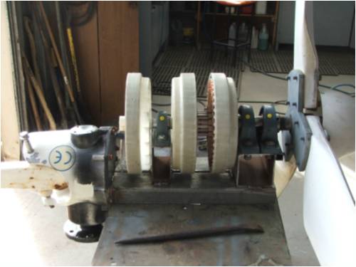 Hi Gordon The original chinese mill (Ebay) was supposed to be for a 48v system 1000w@48v had a crap controler with it which I modified to get it to work.Gen was quite solid and well made but had it going for a while and the highest i ever saw out of it (very briefly) Im a howling gale was 49v AC before the controler no load.we tried to rewire it star & delta also rewind stator but gave up.to hard .This was about 2yr ago. If i new what I know now we would done more. BUT you see the shaft in the pics,that is the original rotor shaft so as you can see there is no turning back Unfortunately. The original mill rotor was a brushless 6 neo magnet rotor .Has 3 slip rings on the yaw pivot. Regds Carl |