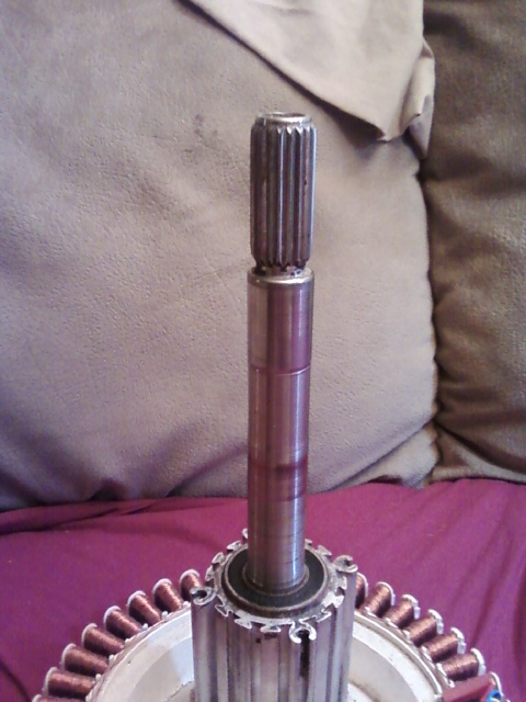 This pic shows more of the coils on the F&P but, mostly gives a good shot of the alluminum housing I kept from the washer tub. I cut this from the tub with a sawzall and then removed the bearings and melted the plastic off. You can see the center of the hub has had the tabs broken off. I did this to play with the idea of off setting this coil pack with another one on the other side of the shaft.