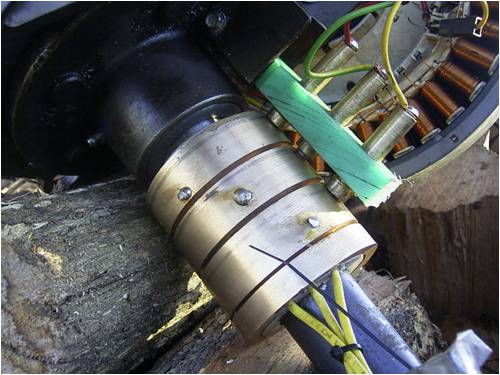 You may need to add some weather protection to the assembly. The slip rings would probably only last a few months at my place. Steel rusts within a week and copper and bronze goes green after a few weeks. I would imagine that once current starts to flow, that this would speed the corrosion process. The slip-ring arrangement [brass rings, with carbon/copper brushes] in my mills is enclosed in the yaw box assemblies. At least you will be able to see when maintenance is due. LOL. Gordon. become more energy aware |