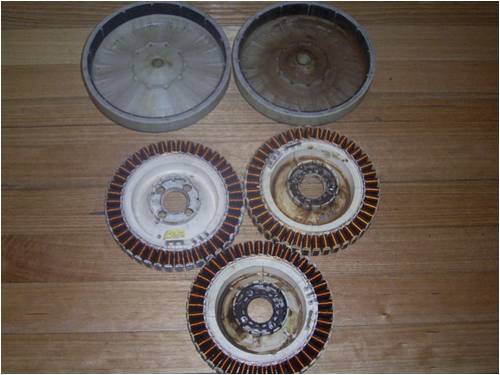 You will have to file the top of each pole (long edge)so the profile looks curved ( i can send a photo if you want)to get best low wind results but here are the BEST outputs for each thickness of wire: 1mm wire (100S) 48v Delta (startup 400rpm max output 600 watts at 750 rpm) 1mm wire (100S) 48v Star ( startup 200rpm max output 420 watts at 800rpm) Remove all 6 connectors , large plastic lug on left is No. 1 small plastic lug on right is 6. connect 1&5, 2&6, 3&4 for delta : connect 1,2 & 3 together then 4,5,6 become the phases for STAR. other wiring methods below are to detailed to mention now. .8mm wire (80S) 24v Star rewired half series half parallel(80-02S-07P-S) startup 300rpm max output 600 watts .6mm wire (60S) 12v Delta rewired all parallel (60-01-14P) startup 320rpm max output 540 watts 12v Star rewired all parallel startup 200rpm max output 350 watts DONT use .6mm on anything else as it is low output or high startup wind speed. Except 24v star if you can wait til 400rpm startup and max output 600 watts at 800rpm Hope this helps. Cameron. All smart drive parts sold Custom built turbine parts on Multicam flatbed CNC Router |