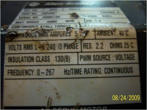 The winding resistance is 2.2 ohms. This is quite high and will limit the useful power on a 24V system. This was designed for 240VAC at 4000rpm. The wiring is rated for 5A continuous on the nameplate. Gordon. become more energy aware |