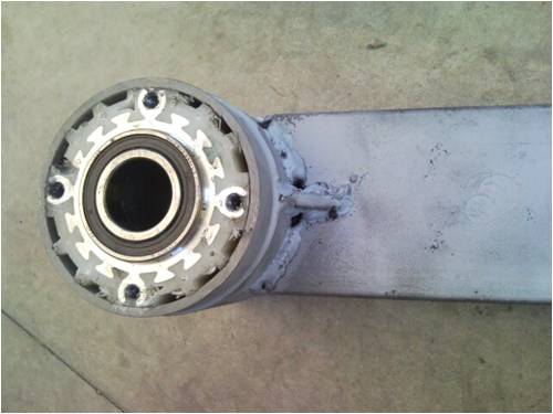 I then machined an old starter motor body(just the right size) and snuggly press fitted the bearing housing into it.