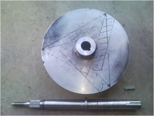 Nice work there Marcus I have always had reservations about using an F&P shaft for mounting all three (whirring ) blades, not enough steel. I like the way the iron bars extent passed the shaft center line this will add strength and rigidity to your hub plate. Grooving the bars at the rear (instead of the front like I did)is a real plus. NICE Jim |