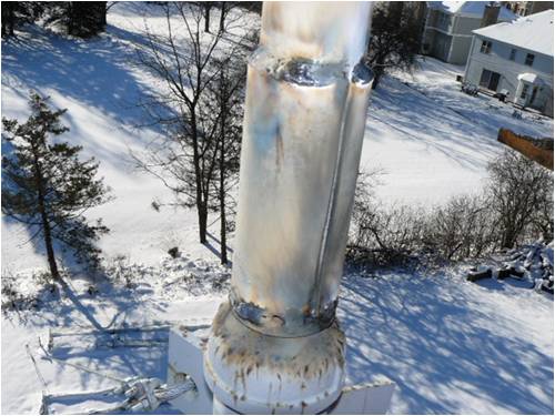 My Christmas present came early this year!! This is what I get for not using a solid mast or and not welding the coupling to he pipes. If I am not mistaken looks like the coupling is cracked. I am Dam lucky she's still on top of the mast and not on the ground.