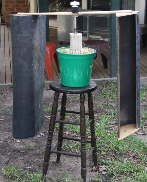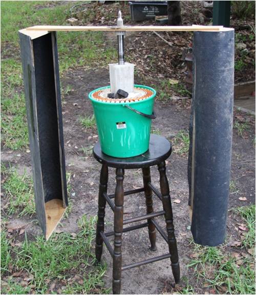 the statot fitted nicely in a bucket atop a stool and it was ready to go.