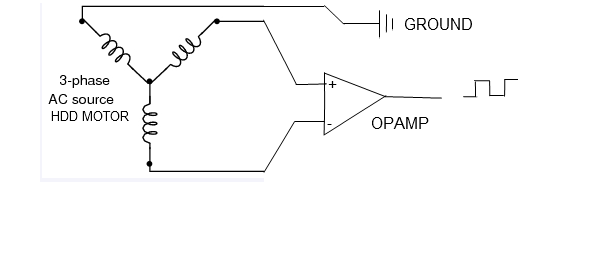 As there was a HDD motor on the bench from testing the HDD generator someone else asked about, i had a play at reading a pulse from the 3 phase motor.