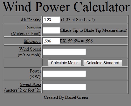 Forum Index : Windmills : Wind Turbine Power Calculator