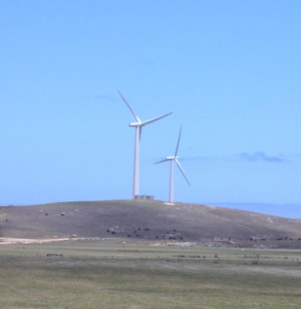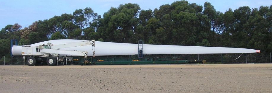 HI all i was recently on hols down at Portland Vic and noticed these two massive turbine blades sitting in a landforming yard, didn't know what they were for a few seconds due to the sheer size, mum thought they jumbo jet wings! They are 29 metres long weigh around 8 tons and are made of fibreglass. The rotor wieght combined 30 tons the gen nacelle wieghs 50 tons and the 50m high tubular steel tower wieghs around 80 ton. They are presumably destined for the nearby Codrington/Yambuk wind farm where there are 34 1.5 MW turbines. Having never seen turbines or a windfarm of that size before i was pretty inspired. Quite amazing to see these things in action up close! I dont know why people kick up a stink about the look of them, I reckon they look better and much more exciting than a coal fired power station!