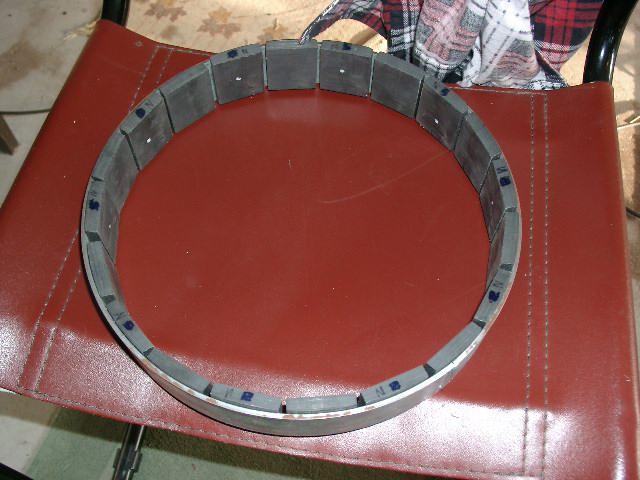 Yes there is -it's fairly typical for these big diameter stators to have ,what this has, a wide binding of hard drawn steel wire coiled tightly just inside the coils to felect the power towards the magnets(I think).