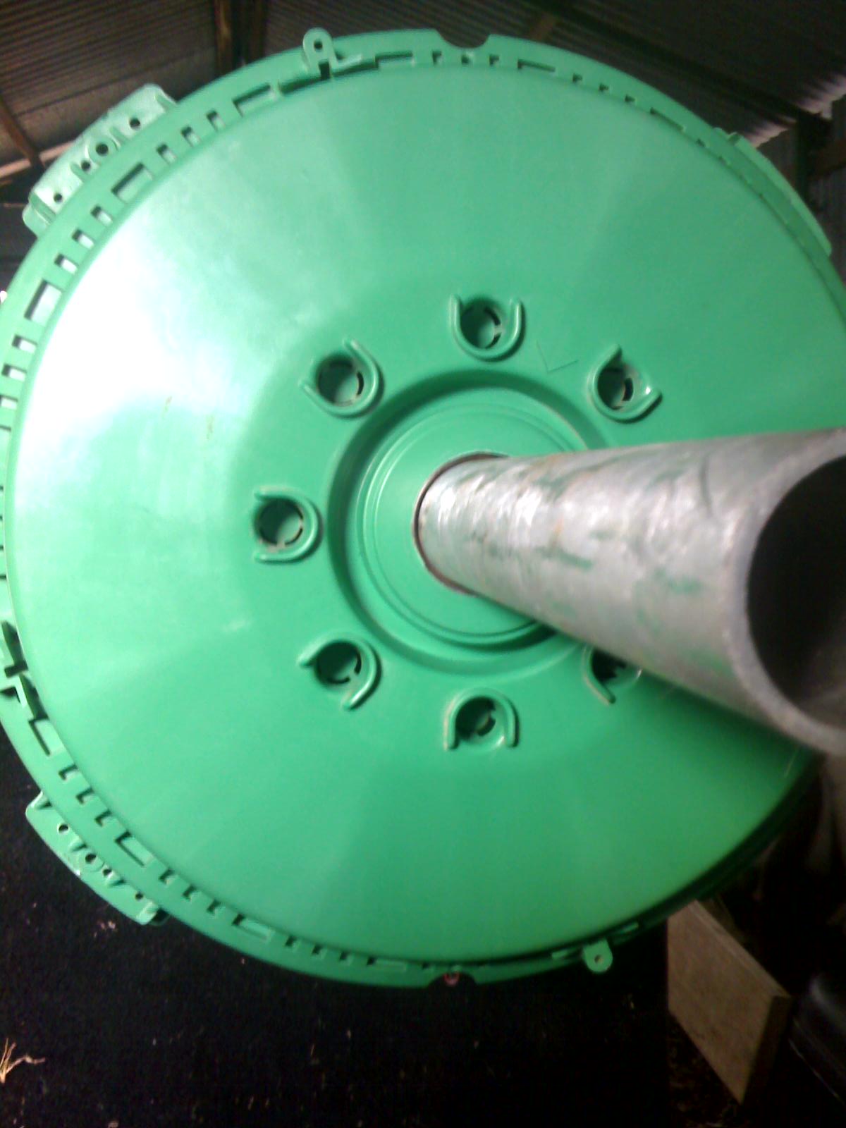 The other thing I've began is to remove the plastic bearing centres and run 40mm tube straight through the bearings, the tube needed to be reduced to ~39.5mm to suit the bearings which I was able to do with a file while spinning the tube and regularly slipping the covers on to check fit, 100mm aluminium disc with some grub screws will need to be made to hold the stator, three bolts will go all the way through.