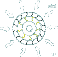 G'day martinjsto, Another thought is to use a shield of aluminium that covers one half of the outer circumference. It would be mounted on a track or the like,so it rotates with wind direction driven by a vane so it keeps the backs of the rotor blades shielded from the incoming wind. There might be less mechanical work with that than arranging for moving blades. It does however do away with one of the claimed advantages of the European turbine to which I have posted the link and that is, instant response to changes in wind direction. Compromise, compromise.