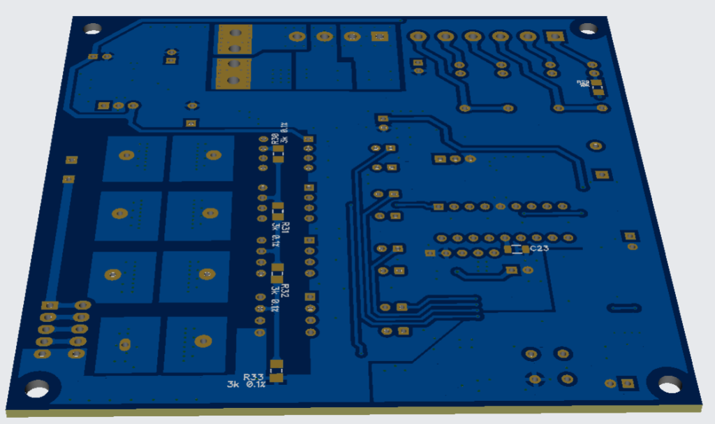 Two isolated relays used for over\under voltage output, a high current high side mosfet is used to switch the battery load (up to 10 amps) or turn on a large DC contactor relay when voltages are in limits.