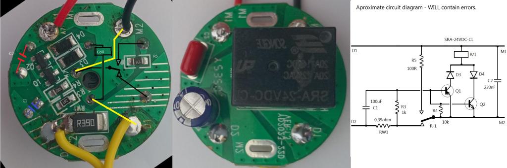 Another thing to check on the current cut-out is the resistance of the relay contacts, D1 to M1 I think. On the top photo the relay conceals the tracks so you will need to check where they go with a meter.