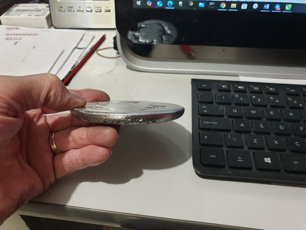 Since then I filled two of them and because I have a plumbing type job coming up, yesterday I melted it all down. There was lots of rubbish in it but it seperated very well and looks quite useful to me.