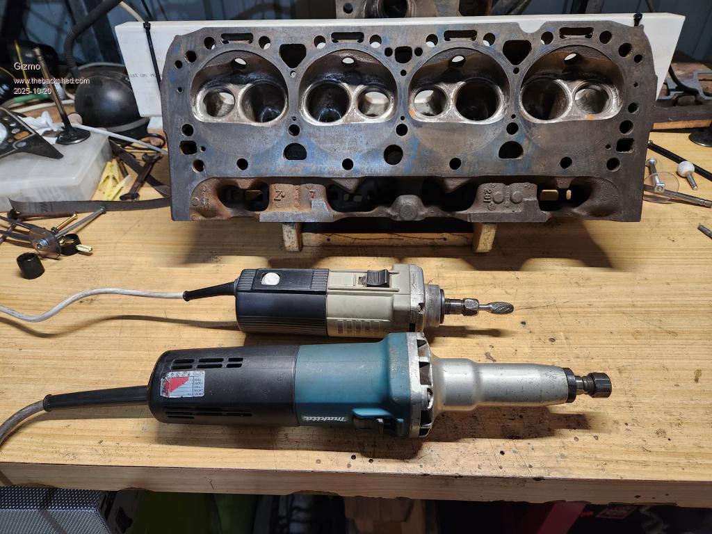 I've been using those electric die grinders. They are a little scary, there is no quick way to shut them off. On more than one occasion the bur got a chatter up while deep inside a port and you need to hold on for dear life and try to get it under control before it destroys the bur or takes chunks out of the port. The bigger grinder nearly drew blood when a extra long bur got out of balance, bent at 90 degrees to the chuck and shook so violently all I could do was hold or drop it, fortunately for me a wire in the motor shook loose and it shut down. I haven't used that one since.