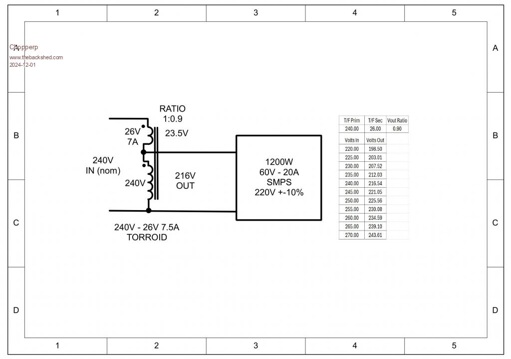 Measured mains volts this morning at 249V on the inverter display & 247V with my trusty RMS DMM at a nearby power point. Good voltage to let some smoke out of stuff.