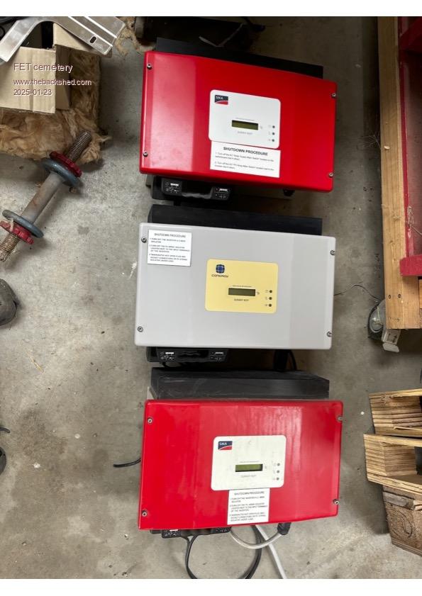 One of he units was Conergy branded but all had identical labels / specs on the side of the case.The only difference I noted was that the big caps were different brands and slightly different values in one of the red sunnyboy units.