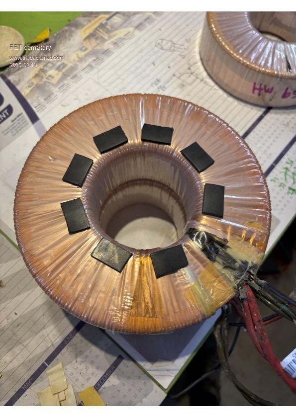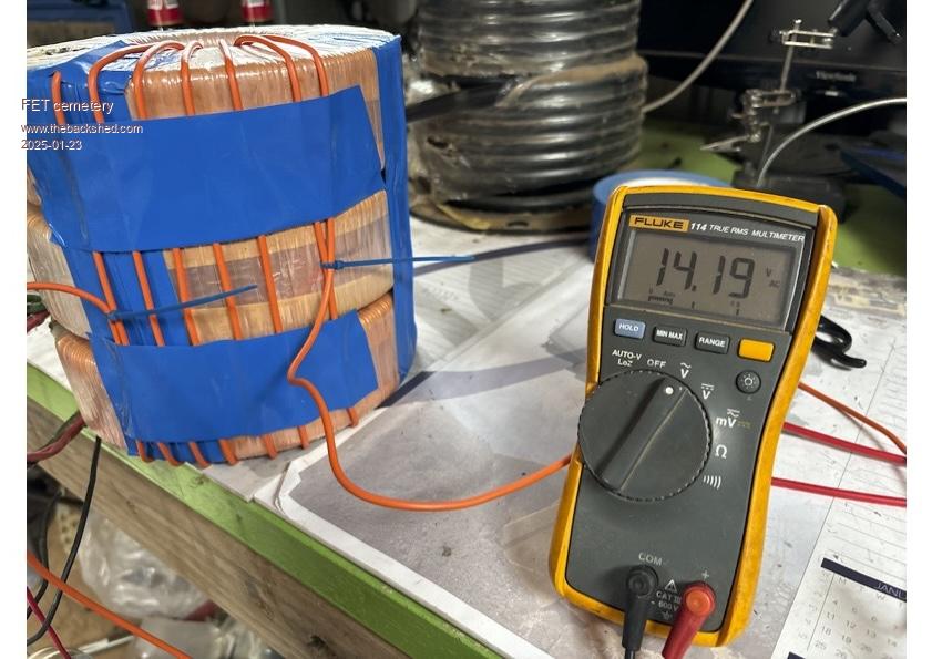 I note you referred to having a primary wound and putting 4KW through it from an inverter, does that mean you have the have new inverter running now? That stack of 3 toroids must ne a handful to shift around !