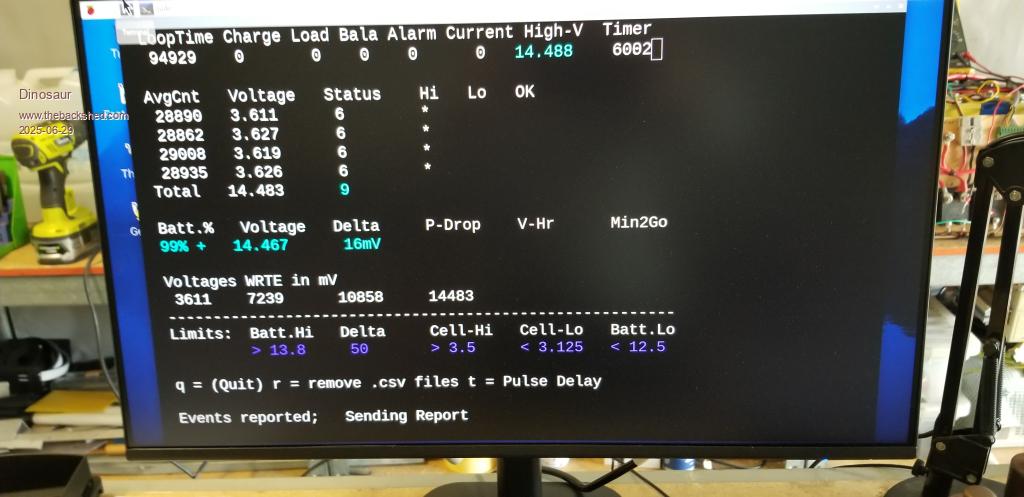 The whole system is currently controlled by a Rpi Zero with cell Voltage sensing, which will also cut off the SSR when the rules apply.