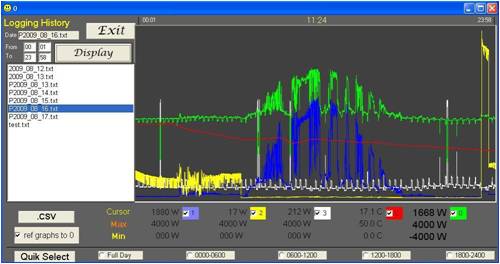 I can pretty much do any calculations now I have access to the raw data. I store the data as daily files at present. I am looking at making some more files for accumulated kWhr. As I make more observations, more options come to mind.