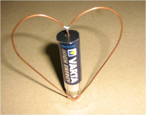 The copper ring should spin around the battery in an orbit motion. ( needs to be a fully charged battery)