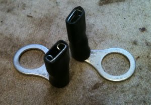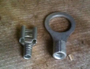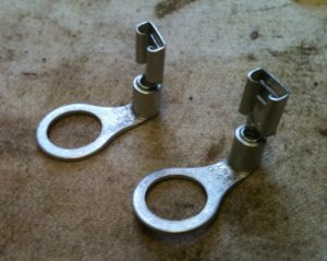 First up, some spade connectors. I used the type shown on the left, with the basic crimp, its easier to slide off the plastic insulator and they will fit neatly into the big eyelet connectors.