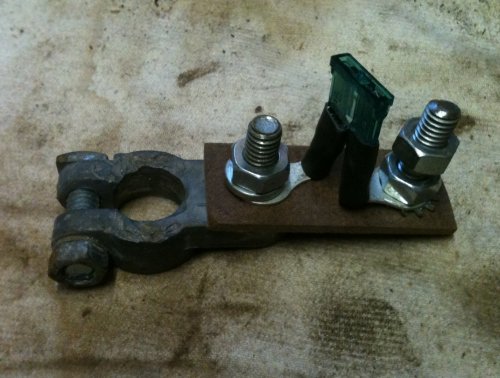 The finished fuse holder mounted on a battery terminal. Cheap and does the job.