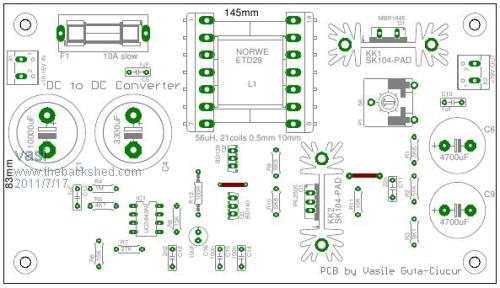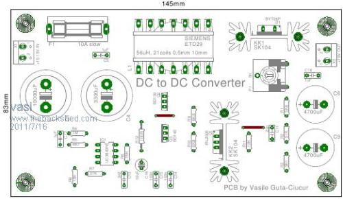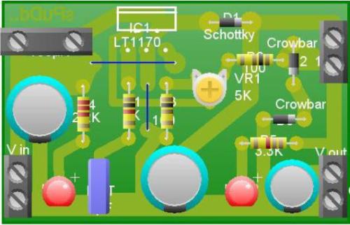 Vasi, I used PCB Wizard 3.50 Pro Unlimited, be warned it has some incorrect parts errors, and other bugs/issues. Yes it was a nice pretty program, but at a price... There's a good chance you can get free samples of the LT1170 from Linear Technology. There is also the LT1268 which is a 150Khz 7.5A version of the same thing. It should work ...in theory |