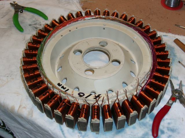 Very interresting looking stator, those curved pole ends have got me a little worried. The new stators have less poles, and curved pole ends, so there is a chance these may make less power than the old 42 pole stators. However, the fact they have virtually no cogging is a big plus. It may end up these are suitable for low wind startup, low power windmills. I can see I'm going to have to get one in and have a play. Glenn The best time to plant a tree was twenty years ago, the second best time is right now. JAQ |
