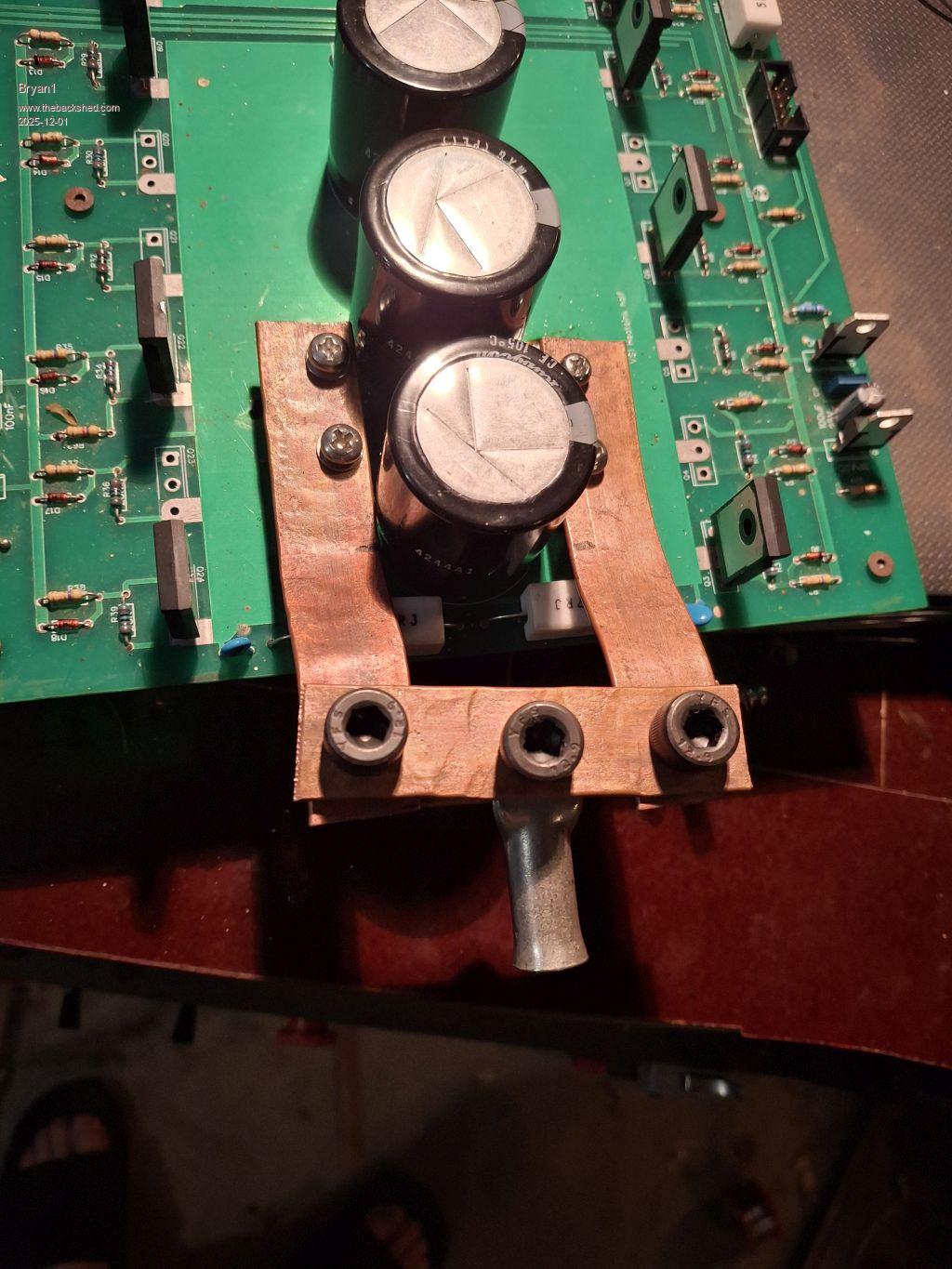 Well I scrathed the idea of using those M4 seats as the last thing I need is a joint failure when drawing 4Kw or more and on talking with the sparkie at work I came home with 4 off 50sqmm 150mm long with 10mm lugs on one end. So got the seats off the pad and my trusty solder sucker copped a beating and used some Bakers soldering flux to help tin the end, used my fine blow torch and got a solid wire as I did use my mini hacksaw to true up the end.Anyway my old soldering irons my dad me had seen better days so as Roger did show me his heavy duty soldering iron I do think it's best to use that. Anyway as I was told bakers soldering flux is a big NO NO and with the 50sqmm wire being 150mm long there is plenty of green as the idea when the wire comes off the board it's going down to make the connection with the choke. So got Saturday arvo planned with Roger where all the heavy wire can get done correctly then not far away from doing the first test. Regards Bryan |