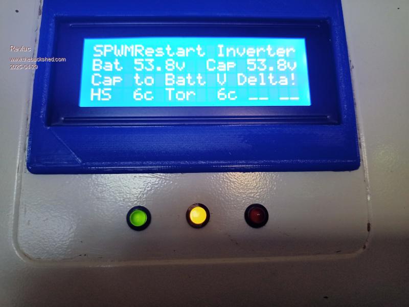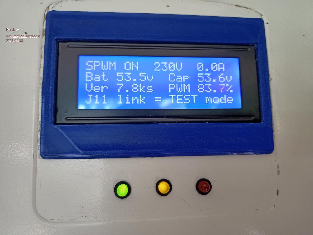 So I restarted the Inverter and it fired up until about the time the output relay turned on (give or take a few seconds) and noticed the LCD go blank, cant tell exactly when it went blank before taking a photo, the rest of the Inverter was running ok and output voltage was all good.