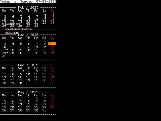 Hello Vadim, I'm glad to hear from you again and that you're doing well. It's great that you're so productive. I like a lot of the new things. For example, the new command line. Nice and simple solution! I was thinking about whether there should be a menu bar in the top line - like in the original NC. Another point is the data structure: The code would be easier to maintain and shorter if two-dimensional arrays could be used for LFList$() & RFList$(). That is, FList(Rmax,1) length 64. You could then write: Function GetCurrFileName$() As string instead of:GetCurrFileName$=FList$(FLIndx,PSide$="L") End Function Function GetCurrFileName$() As string If PSide$="L" Then GetCurrFileName$=LFList$(LFLIndx) Else GetCurrFileName$=RFList$(RFLIndx) EndIf End Function I'm sure I'll think of more. By the way, I find it very enriching to see the different solutions. Kind regards Michael This is a screen shot of the calendar program (cldr.bas): ![]() And this is a small update (v081): cldr.zip Edited 2025-03-10 08:22 by twofingers causality ≠ correlation ≠ coincidence |